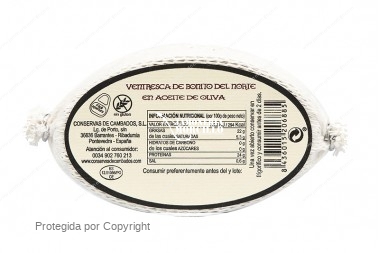 INGREDIENTES: Ventresca de Bonito del Norte (pescado), aceite de oliva y sal.